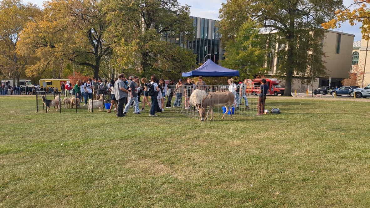 Yhdessä aitauksessa on vuohia. Toisessa on aasi. Vuohet kuuluu sellaiselle firmalle joka vuokraa niitä ruohonleikkuriksi. Esim. yliopisto vuokraa vuohet leikkaamaan ruohot sellaisilta jyrkiltä rinteiltä joilla on vaikea käyttää ruohonleikkuria. Aasi taas tarvitaan siksi että vuohet stressaantuvat helposti esim. autojen metelistä. Aasi on niiden terapia-aasi, se rauhoittaa vuohia.